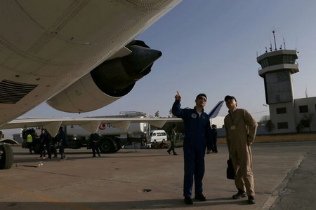 局方試飛員與試飛工程師進行檢飛前檢查。