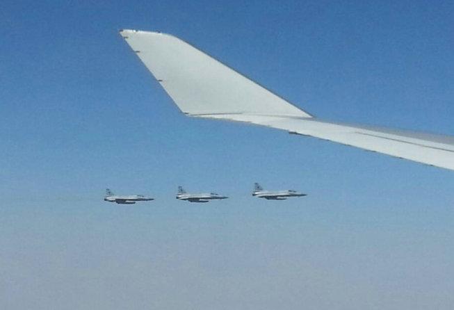 訪問巴基斯坦的中國總理李克強乘坐的專機22日進入巴領空后,巴空軍派出6架“梟龍”戰機進行了編隊護航。在很多情況下,為到訪專機護航有著很現實的安全需求。不過,對大多數國家而言,在和平時期派出戰斗機為外國首腦專機護航,則更多是一種禮遇,而護航戰機的數量體現著兩國關系的親密程度。