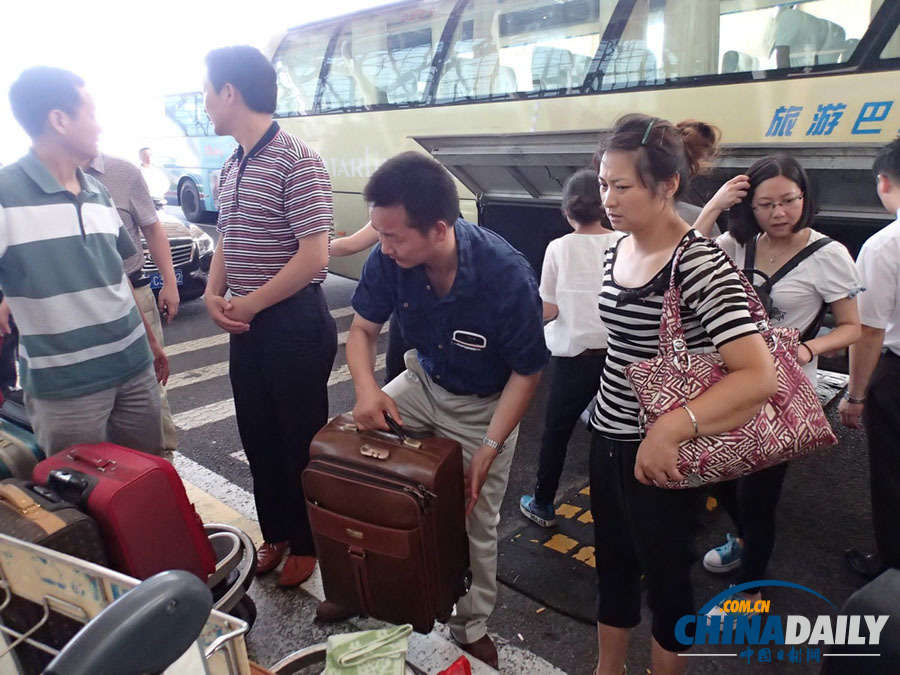 7月8日,在韓亞航空舊金山墜機(jī)事故中罹難的中國(guó)乘客王琳佳的父親(前左二)和母親(前右)抵達(dá)上海浦東國(guó)際機(jī)場(chǎng)。(高爾強(qiáng) 攝)