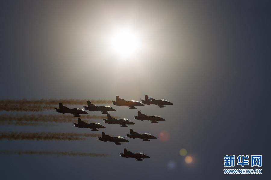 8月3日,在匈牙利中部的凱奇凱梅特空軍基地,來自意大利空軍的“三色箭”飛行表演隊在匈牙利國際航空展上表演! ⌒氯A社發(弗爾季·奧蒂洛攝)