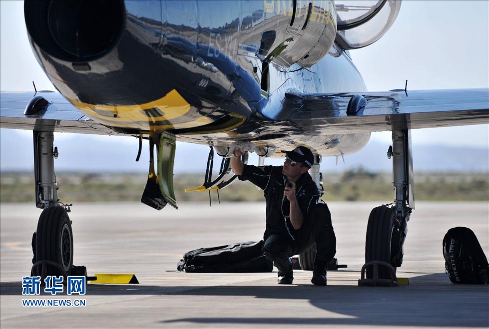 當日下午,國際著名的民用專業噴氣機特技飛行表演隊——歐洲百年靈飛行表演隊抵達嘉峪關國際機場。據了解,百年靈飛行表演隊將在8月13日上午在嘉峪關關城上空進行特技表演,之后機隊將飛往克拉瑪依進行表演。新華社記者 陳斌 攝