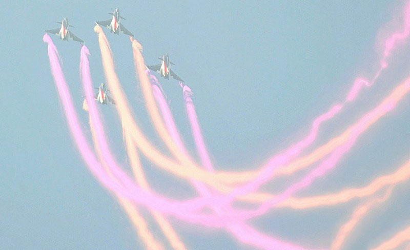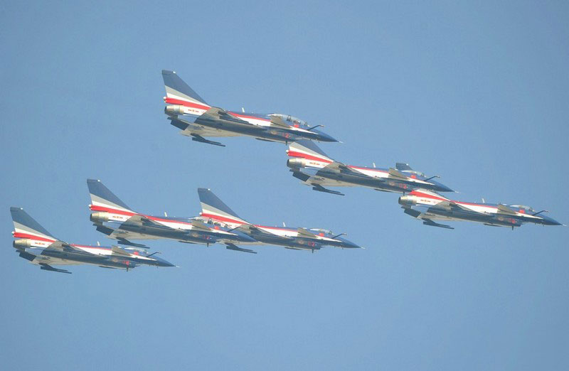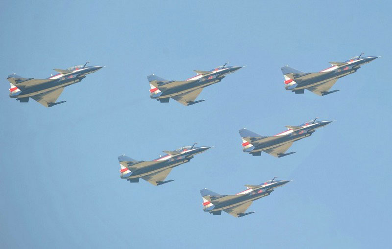 【環(huán)球網(wǎng)赴珠海航展特派報(bào)道組綜合報(bào)道】第九屆中國(guó)國(guó)際航空航天博覽會(huì)(珠海航展2012)將于11月13日-18日在廣東省珠海市金灣區(qū)三灶鎮(zhèn)隆重舉行。開(kāi)展當(dāng)日,中國(guó)空軍八一飛行表演隊(duì)的6架殲-10戰(zhàn)機(jī)翱翔藍(lán)天,漫步云端。