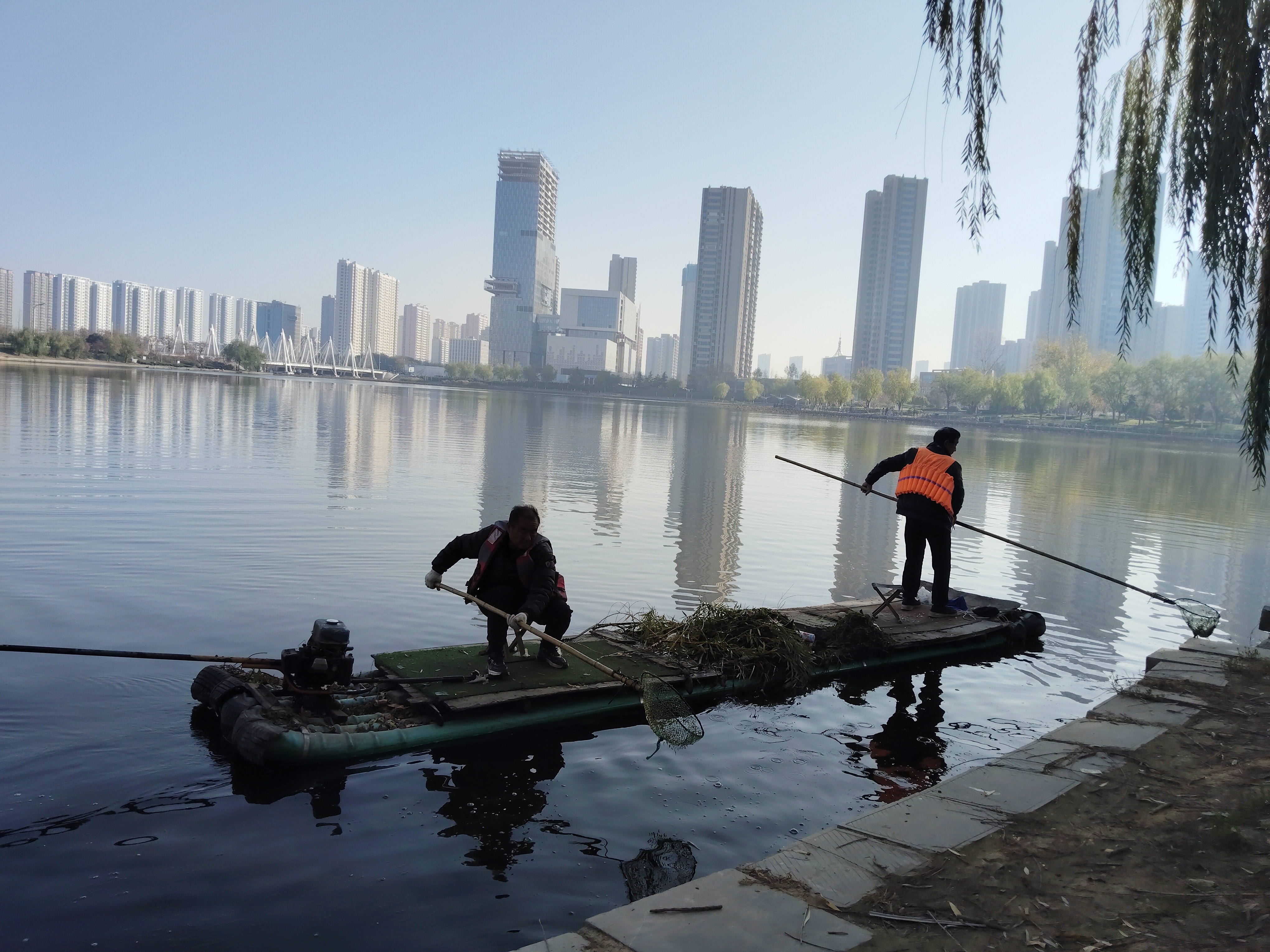 山東菏澤趙王河上工作人員清理河道漂浮垃圾。(圖片來(lái)源:水利部)