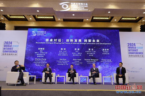 中國經濟網烏鎮11月22日訊(記者 郭文培 李方) 11月21日,由國家互聯網信息辦公室、中國國際貿易促進委員會、經濟日報社聯合主辦,中國經濟網、阿里巴巴集團協辦的2024年世界互聯網大會烏鎮峰會互聯網企業家論壇在烏鎮舉行。在論壇圓桌對話環節,搜狐、知乎、新壹、Arm公司、百度等一眾互聯網企業家們圍繞人工智能與創新發展的主題進行了暢談。