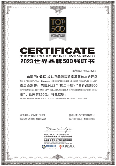 12月19日,世界品牌實(shí)驗(yàn)室(World Brand Lab)2023年度《世界品牌500強(qiáng)》排行榜揭曉,48個(gè)中國(guó)品牌入榜,中國(guó)企業(yè)長(zhǎng)虹排名世界品牌榜第285位,較2022年上升1位。同時(shí),中國(guó)國(guó)航、長(zhǎng)虹、海爾智家等35個(gè)領(lǐng)軍品牌入選“2023年中國(guó)品牌年度大獎(jiǎng)”。