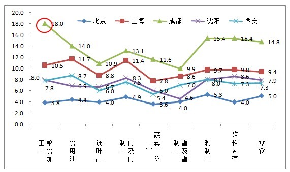 解讀四:成都的食品安全信心指數增長最快,其次是上海,最差的是北京