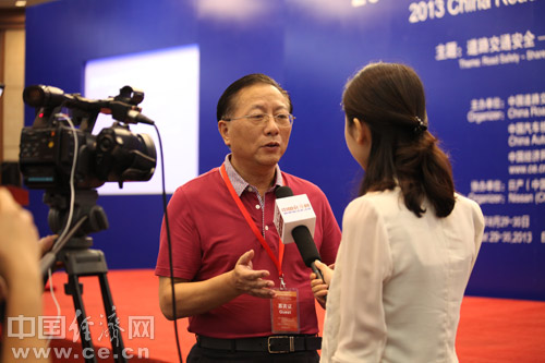 由中國道路交通安全協(xié)會、中國汽車技術研究中心和中國經(jīng)濟網(wǎng)共同主辦的“2013中國道路交通安全論壇”于8月29日在北京首都大酒店舉行。圖為2013中國道路交通安全論壇與會嘉賓接受中國經(jīng)濟網(wǎng)記者郭樅樅采訪。中國經(jīng)濟網(wǎng) 裴小閣 攝影