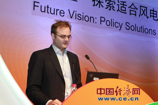 所謂的滲透率和普及率,在全國來看確實很低,但我們看一下內(nèi)蒙古等地區(qū),在國際標(biāo)準(zhǔn)來看它的滲透率也是很高的,去年內(nèi)蒙古的風(fēng)電滲透率可以與德國相比,風(fēng)能占總裝機容量的16%。在中國的管理問題更加突出,因為理論上講這樣地方的風(fēng)力資源更有優(yōu)勢,在發(fā)展風(fēng)電的時候要更好地統(tǒng)籌考慮。在內(nèi)蒙古火電站和風(fēng)場怎樣進行統(tǒng)籌考慮,像德國這樣更好的并網(wǎng)。因為德國在并網(wǎng)和利用風(fēng)能方面有更多的經(jīng)驗,德國的一些工作已經(jīng)走在了中國前面,有些事情在德國已經(jīng)順理成章,在中國還沒有這樣。我們發(fā)現(xiàn)鑒于中國已經(jīng)進行的開發(fā)活動,像內(nèi)蒙古這樣風(fēng)力資源充沛的地方,在近期可能會成為世界上風(fēng)能普及率最高的地方之一,成為全世界的佼佼者。在內(nèi)蒙古這樣的地方,占中國總體風(fēng)力市場的35%左右。在這樣的地區(qū)市場上,風(fēng)力資源非常充沛,與風(fēng)能相抗的只能是煤電。因此,我們面臨整合的問題。也就是怎樣將風(fēng)電和煤電進行整合。一般來說煤電占500兆瓦,風(fēng)電也需要有類似的裝置,必須保證24小時都能夠利用風(fēng)能,這樣就可以保證風(fēng)電的供應(yīng)。如果有400兆瓦的風(fēng)機容量得到安裝,并進行有效運作,確實可以解決相關(guān)問題。